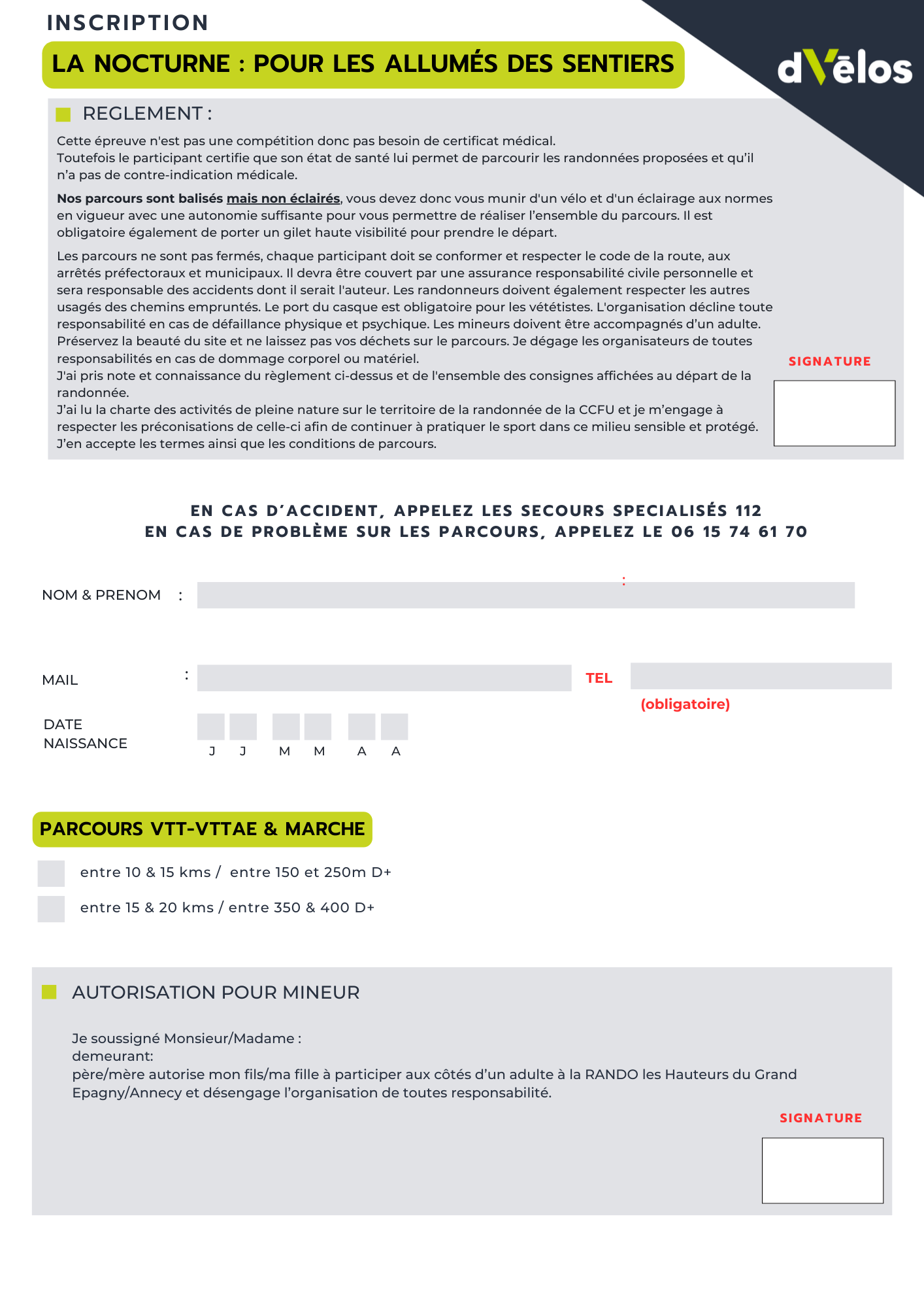 Pas de certificat médical requis (non compétitif), mais chaque participant atteste être apte.